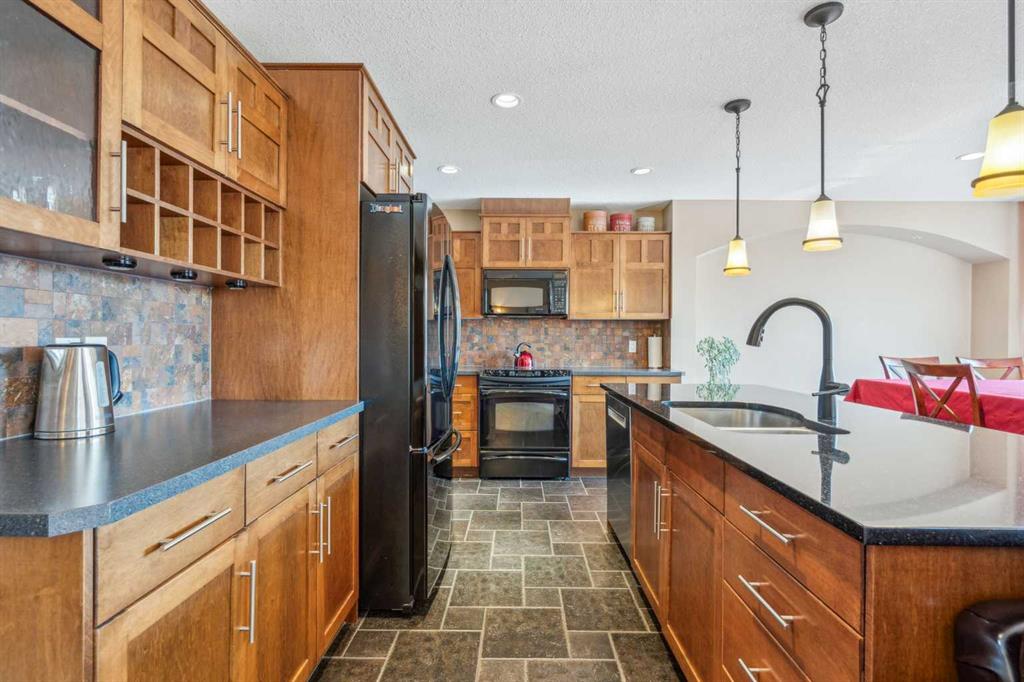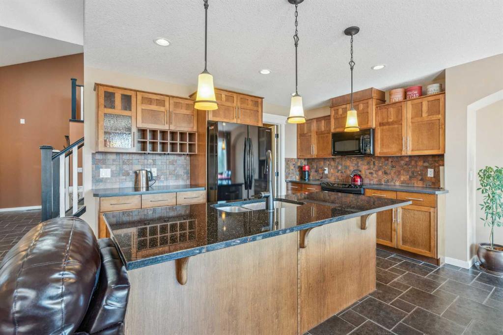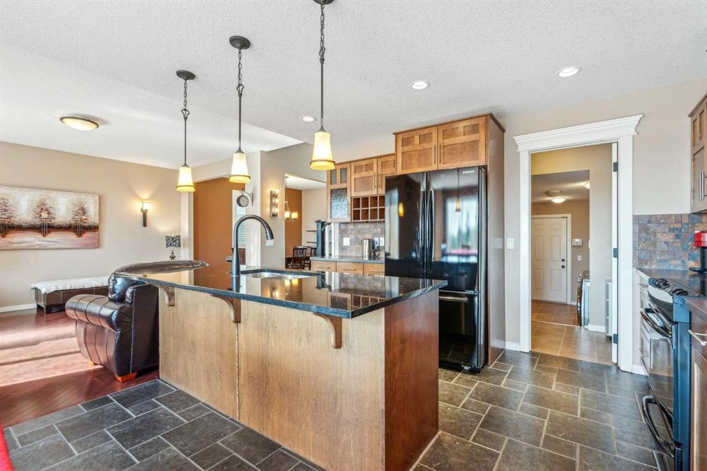 Don’t miss your chance to own one of the few homes in Okotoks backing directly onto the family-friendly Crystal Ridge Golf Course, with breathtaking views of a tranquil pond and natural wooded area. Imagine enjoying your morning coffee from the upper deck, overlooking a peaceful, meadow-like setting. This 2.5-storey home features an open-concept main floor with a spacious kitchen, large island, and breakfast nook—all designed to capture the stunning views. The kitchen also includes ample counter space, a walk-through pantry, and direct access to a generous double-car garage. Adjacent to the kitchen are the dining room and cozy family room, creating the perfect layout for entertaining or family living. Upstairs, the bright and sunny primary bedroom offers two walk-in closets and a 4-piece ensuite. A large loft with a natural gas fireplace provides a versatile second living space, ideal for relaxing or entertaining. The walkout lower level includes a second bedroom, a spa-inspired 4-piece bathroom, and a large custom walk-in closet with built-in shelving. There's also a flexible area perfect for a home office, gym, hobby room, or media space. Step out onto the lower patio, which opens to a charming wooden deck with rustic, cabin-style appeal. Situated on a quiet cul-de-sac, this home offers privacy and tranquility, with lawn care and snow removal included through the Homeowners Association. You’ll also enjoy full access to the Crystal Ridge private lake—swimming, kayaking, skating, and fishing await, along with picnic areas, beach volleyball, fire pits, and barbecues. This unique home truly has it all—location, lifestyle, and views. Call today to book your private showing!